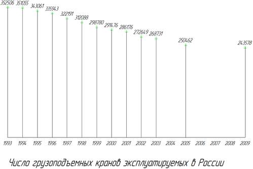 То, что в России перестали производить краны в необходимом количестве, наглядно демонстрирует график, изображённый на рис. 1.