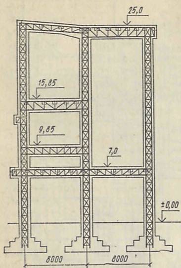 Монолитные рамы больших пролетов и с большой высотой этажей целесообразно армировать несущими арматурными каркасами (рис. 11).В процессе строительства несущую арматуру используют вместо лесов для принятия нагрузки от опалубки, свежего бетона и всех монтажных устройств. После приобретения бетоном достаточной прочности несущая арматура включается в работу в составе железобетонного сечения конструкции.