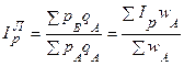 где w – стоимостные объемы товарных групп в странах А и В в национальных валютах.