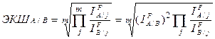 Информация о ценах и количестве товаров при многосторонних сопоставлениях обрабатывается как единый массив данных. Наибольшее распространение получил метод ЭКШ (Элтетэ, Кэвеш, Шульц). Формула индекса ЭКШ для стран А и В имеет вид:
