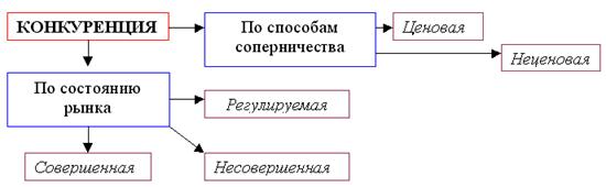 В данной схеме показана основная, самая популярная классификация: по состоянию рынка и по способам соперничества.