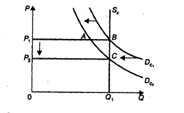 Согласно классической теории совокупный спрос обычно стабилен, но если бы упал, как показано на рис. 14.2, с Dc1 до Dc2, то цена быстро бы снизилась с Р1 до Р2 В результате временное превышение предложения АВ устраняется и восстанавливается полная занятость в точке С.