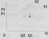 Рис.2 показывает, что при цене 0Р1, равной полным издержкам производства на худшем участке ТС4, дифференциальная рента есть только на лучших 1, 2 и 3-м участках. Худший участок никакой ренты не имеет. Если это было бы на самом деле, то худшие участки не сдавались бы в аренду, и предложение данной продукции снизилось, что вызвало бы рост цены. Для того чтобы не происходило значительного сокращения производства из-за выбытия из оборота худших участков, к цене 0Р1 делается надбавка Р1Р2. Благодаря ей и худшие участки получают ренту и продолжают производить нужную потребителям продукцию. Абсолютная рента получается на всех участках, и так как она включается арендаторами в состав издержек, то ее наличие ведет к сдвигу кривой предложения влево. Надбавка к цене в свою очередь несколько уменьшает спрос на величину Q1Q2.