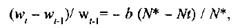 где w - номинальная ставка заработной платы, b - параметр, отражающий чувствительность уровня номинальной заработной платы к изменению уровня безработицы, N* - уровень полной занятости (соответствующий естественному уровню безработицы).