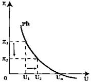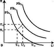 Из графика (рис. 5) видно, что темп инфляции π, откладываемый по оси ординат, и уровень безработицы U, отмеченный по оси абсцисс, находятся в обратной зависимости. В краткосрочном плане инфляционный рост цен и заработной платы стимулирует предложение труда и расширение производства. Об этом и шла речь при рассмотрении инфляции спроса.