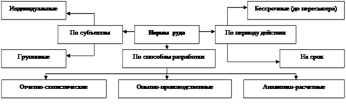 К нормам труда относятся нормы выработки, времени, обслуживания, численности. Они устанавливаются для работников в соответствии с достигнутым уровнем развития техники, технологии, организации производства и труда. В условиях коллективных форм организации и оплаты труда могут применяться укрупненные комплексные нормы. По мере проведения аттестации, рационализации рабочих мест, внедрения новой техники, технологии осуществления организационно-технических мероприятий, обеспечивающих рост производительности труда, нормы подлежат обязательной замене новыми.