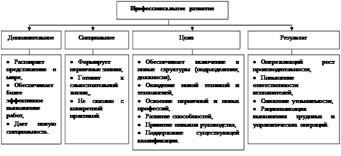 Профессиональное развитие — это процесс подготовки сотрудников к выполнению новых производственных функций, занятию должностей, решению новых задач, направленный на преодоление расхождения между требованиями к работнику и качествами реального человека.