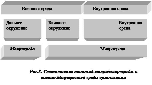 В данном курсе граница систем будет проводиться на уровне организации в целом, поэтому в понятие внутренней среды организации мы включаем ее подсистемы: