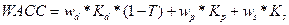 Зная, как определяется цена основных источников капитала, можно определить средневзвешенную цену капитала (Weighted Average Cost of Capital, WACC).