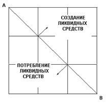 Речь идет о десинхронизации сроков потребления и поступления ликвидных средств: предприятие продолжает увеличивать задолженность, не снижая прежних темпов роста инвестиций (за счет денежных поступлений; за счет увеличения капитала в ущерб дивидендам). Если экономическая рентабельность растет быстрее оборота, то автоматически происходит перемещение в квадрат 2 или в квадрат 1. В противном случае предприятие рискует угодить в квадрат 8, а затем и в квадрат 9.