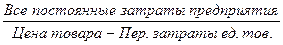 Прибыль = Валовая маржа – Постоянные затраты = 0.