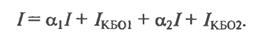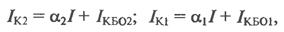 Для определения тока, протекающего через динистор, рассмотрим его двухтранзисторную модель (рис. 2, в). Токи коллекторов транзисторов