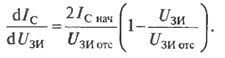При работе в пологой области вольтамперной характеристики ток стока при заданном напряжении UЗИ определяется выражением