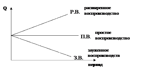 Воспроизводство может быть простым, расширенным и зауженным.