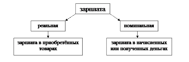 2) Реальная заработная плата – учитывает фактический уровень потребления за конкретный период, т.е. то количество товаров и услуг, которое приобретают работники за свою номинальную заработную плату.