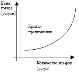 При прочих равных условиях производители предлагают продажи большее количество товара по более высокой цене, чем по низкой.