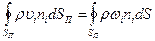 Поток массы через элементарную площадку dSравен скалярному произведению вектора массовой скорости и вектора нормали к площадке умноженному на ее площадь. Для того чтобы вычислить поток массы через всю поверхность нужно проинтегрировать эти элементарные потоки по всей поверхности. Следовательно, можно составить балансовое уравнение