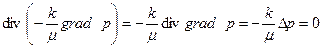 Система (2.10) может быть преобразована. Для упрощения рассуждений пренебрежем массовыми силами и подставим закон Дарси в уравнение неразрывности.