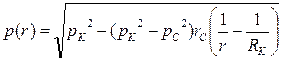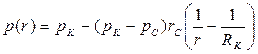 | Распределение давления р (r), rc ≤ r ≤RK | | |