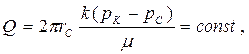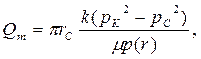 Для газа кривая р(r) (формула распределения давления газа) будет более крутой вблизи забоя, чем для жидкости.