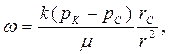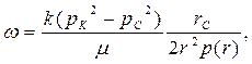 Скорость фильтрации для жидкости обратно пропорциональна r2. Если построить для радиально-сферического потока жидкости график зависимости ω(r), то крутизна кривой у стенки скважины при малых значениях r будет еще больше, чем в плоскорадиальном потоке. То же относится к газу, так как в формуле в знаменателе добавляется значение р(r).