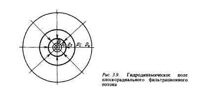 Как следует из формулы распределения давления несжимаемой жидкости, давление в любой точке пласта, в котором происходит радиально-сферическая фильтрация жидкости, р(r) обратно пропорционально координате этой точки. Значит, р(r) - гиперболическая кривая, причем очень крутая вблизи значения r = rс. Семейством изобар являются концентрические полусферы r = const.