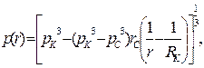 | Распределение давления р (r) rc ≤ r ≤ Rk | | |