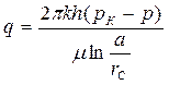 Если бы контур питания был окружность радиуса а, то дебит скважины был бы равен (по формуле Дюпюи):