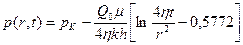 Давление в любой точке плоскорадиального потока в условиях упругого режима фильтрации определяется