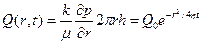 Из (7.23) находят, что расход жидкости через любую цилиндрическую поверхность радиусом r и скорость фильтрации определяются