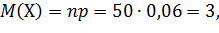 Случайная величина Х – число промахов при 50 независимых друг от друга выстрелах. Вероятность промаха 0,06. Найти числовые характеристики распределения случайной величины Х.