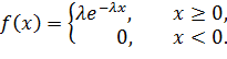 НСВ Х имеет показательный закон распределения с параметром λ > 0, если её плотность вероятности: