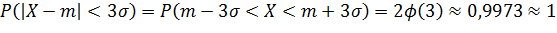 Практически достоверное событие, что значения случайной величины, нормально распределенной с параметрами m и