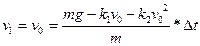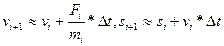 При вычислениях значений v и s в последующие моменты времени можно поступать аналогично (6). Так, если известны значения v1 и si, в момент ti,то