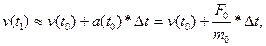 , то, зная скорость v0 в начальный момент времени t = 0 и обозначив ее как v1 в момент