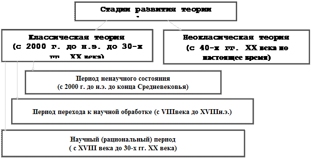 Можно выделить две крупные стадии (теории), характерные для становления и развития науки о финансах, которые различаются исходным посылом в выборе субъекта, доминирующего в финансах как особой сфере экономико-политической жизни общества: