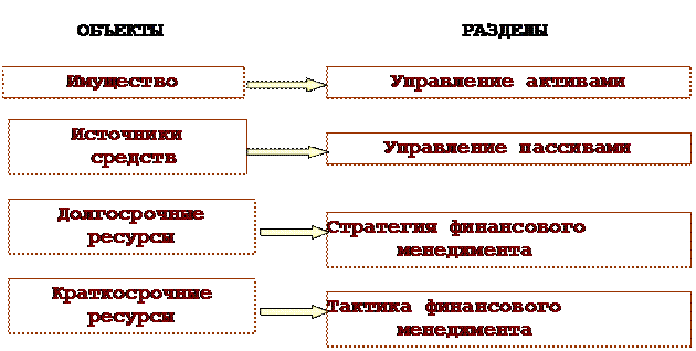 В итоге выделяются семь объектов и, соответственно семь разделов финансового менеджмента (рис.1).