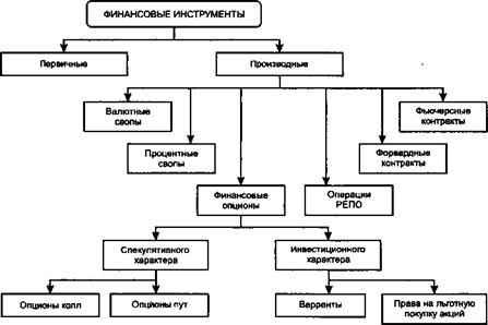 Имея в виду, что в современной трактовке финансовые инструменты по определению суть договоры, можно сделать следующую их классификацию (рис.1 и 2). Как видно из приведенного рисунка, финансовые инструменты подразделяются на: