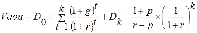 где Vаор – внутренняя стоимость обыкновенной акции с равномерно возрастающими дивидендами;