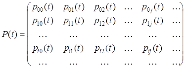 называются функциями переходных вероятностей или просто переходными вероятностями; бывает удобным в рассмотрениях следующий объект: матрица переходных вероятностей: