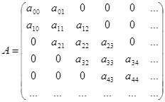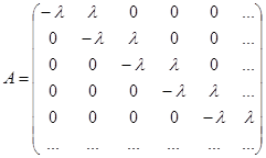 Из ординарности СМО следует, что в ее матрице интенсивностей отличными от нуля могут быть элементы только на главной диагонали и на двух ближайших к ней и параллельных ей линиях: