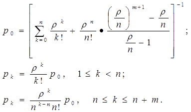 получить из формул для финальных вероятностей СМО типа (m,n) при