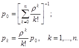 , то все требования находятся на обслуживании, а очередь пуста; соответствующая вероятность: