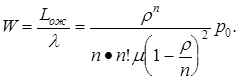 Среднее время W ожидания заявки в очереди также представляет собой величину, которую рассчитывают как математическое ожидание. Соответствующий результат оказывается таким: