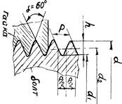 Р -шаг (расстояние между одноименными сторонами соседних профилей, измеренное в направлении оси резьбы)