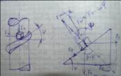 Действие осевой силы, вызываемой винтом ввинчиваемым в гайку, аналогично подъему по наклонной плоскости груза m, с движущ силой Ft, направленой параллельно основанию наклонной плоскости.