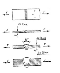 Стыковые швы на прочность рассчитывают по номинальному сечению соединяемых элементов без учета утолщения швов. Для расчета швов используются те же зависимости, что и для целых элементов.