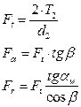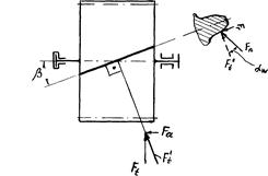 В косозубой передаче нормальную силу Fn раскладывают на три составляющие: окружную, осевую и радиальную.