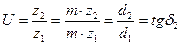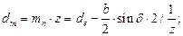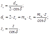 Из рисунка очевидны зависимости диаметров делительных окружностей эквивалентных колёс от средних делительных диаметров конических колёс: