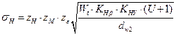 - формула для определения наибольших напряжений изгиба у корня зуба